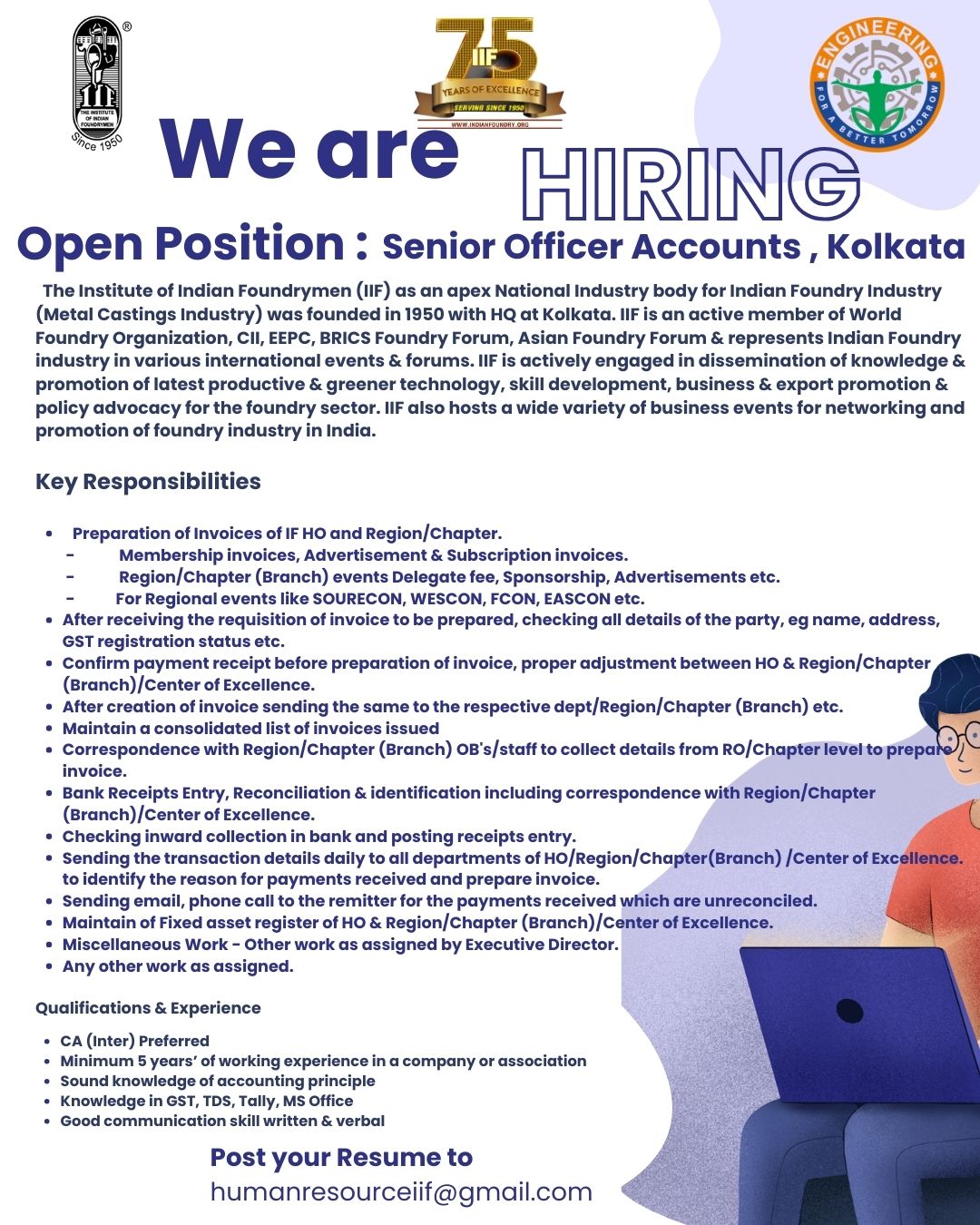 POSITION-SENIOR ACCOUNTS OFFICER, KOLKATA - The Institute of Indian Foundrymen