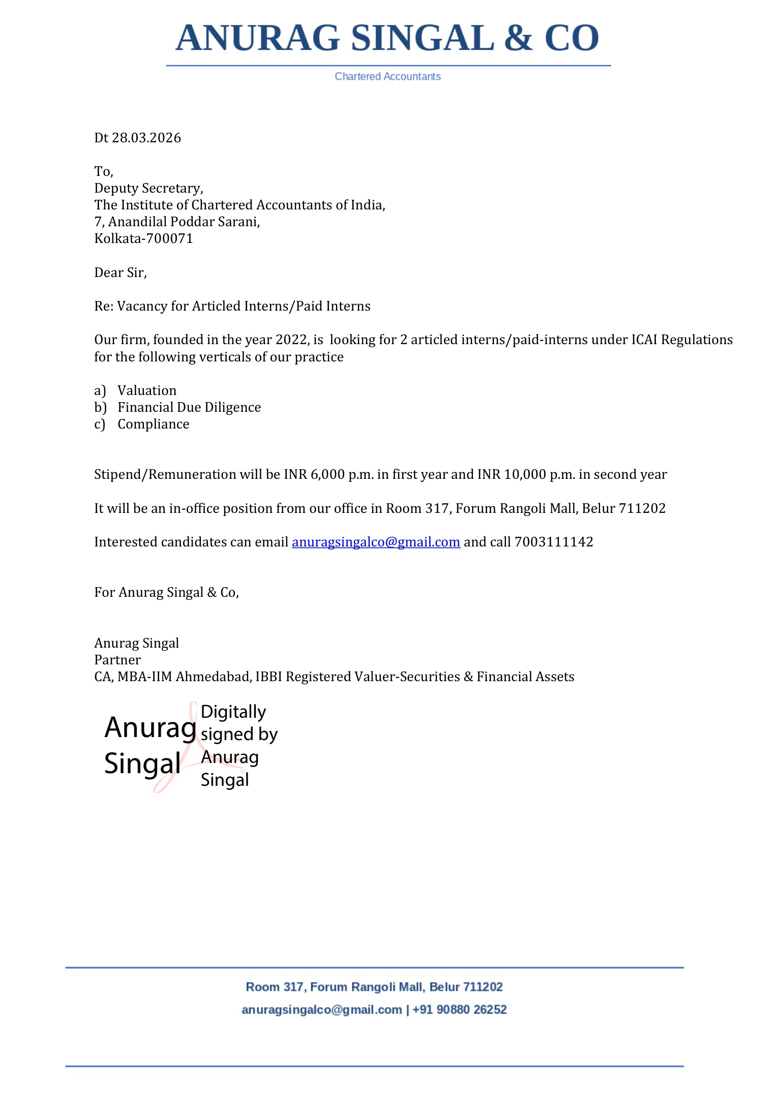 Vacancy - D. K. I. & ASSOCIATES CHART€RED ACCOUNTANTS